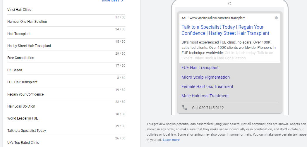 (Modern hair clinic website hero sections with clean, trust-building designs like the optimized pages I worked on.)
